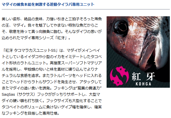 在庫表示/配送/送料等のご説明 製品名 | 紅牙 タコマラカス ユニットSS メーカー | ダイワ (DAIWA) / グローブライド 商品説明 「紅牙 タコマラカスユニットSS」は、マダイがメインベイトとしているイイダコや小型のイカをイミテートしたタコベイト形状のラトルユニット。